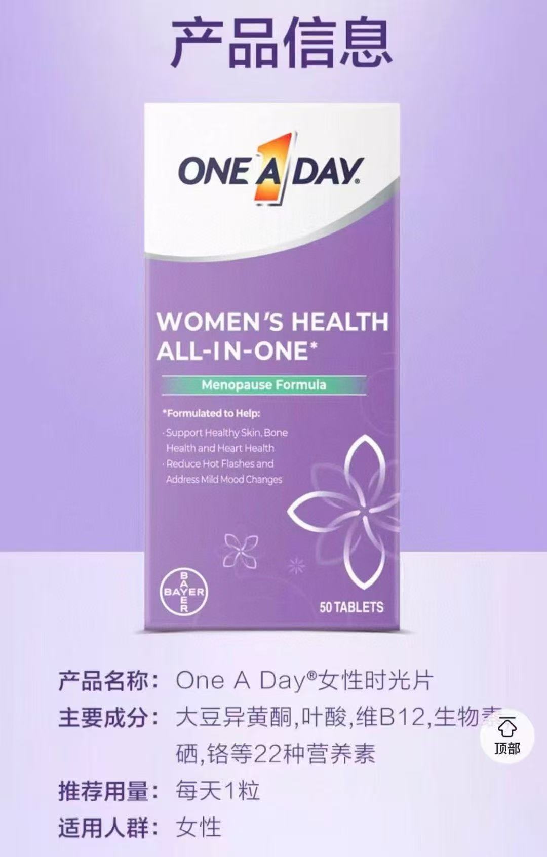 拜耳OneADay女性時光片天然雌激素大豆異黃酮複合維生素50粒【2日送達】